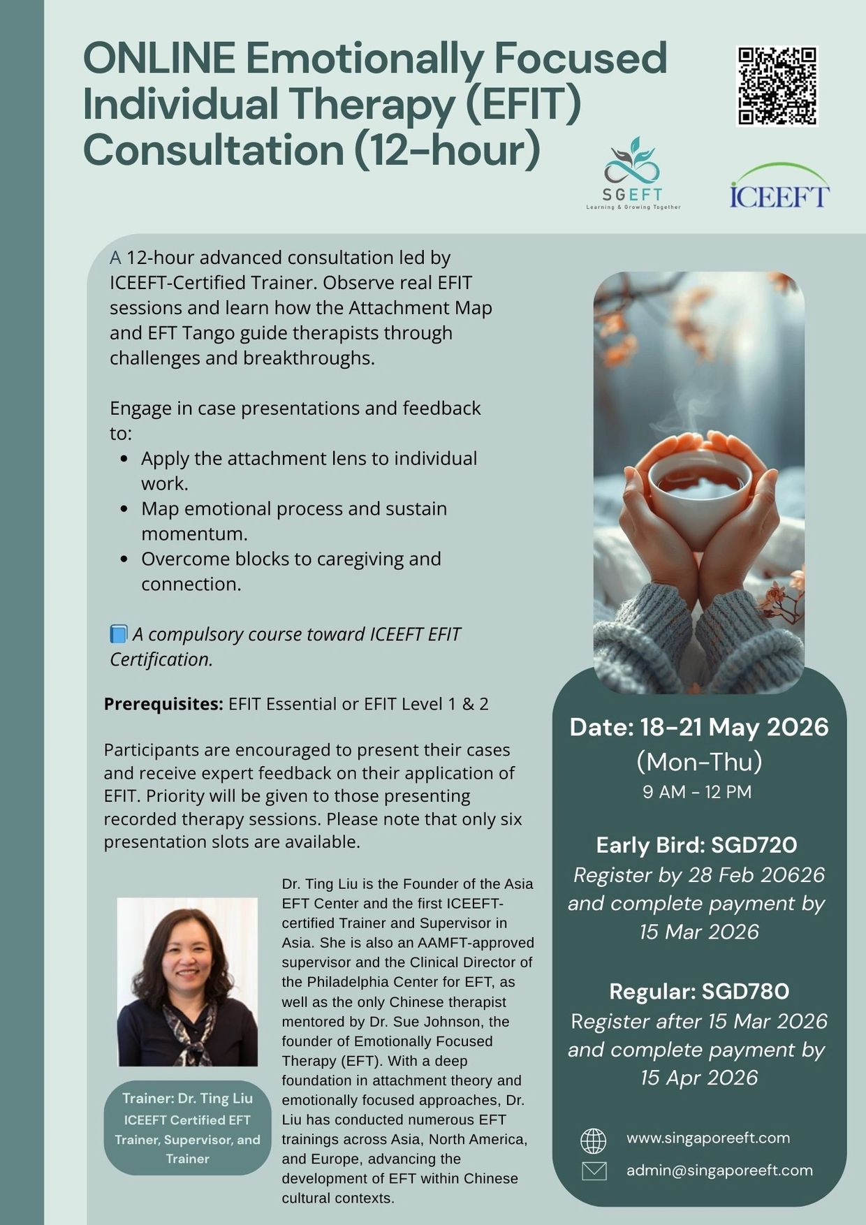 As part of an effective learning experience, some participants will present their cases. Expert trainers will offer feedback and consultation, and engage in role plays with each other and/or participants to demonstrate how the EFIT model can be applied to the specific cases and presenting issues discussed.